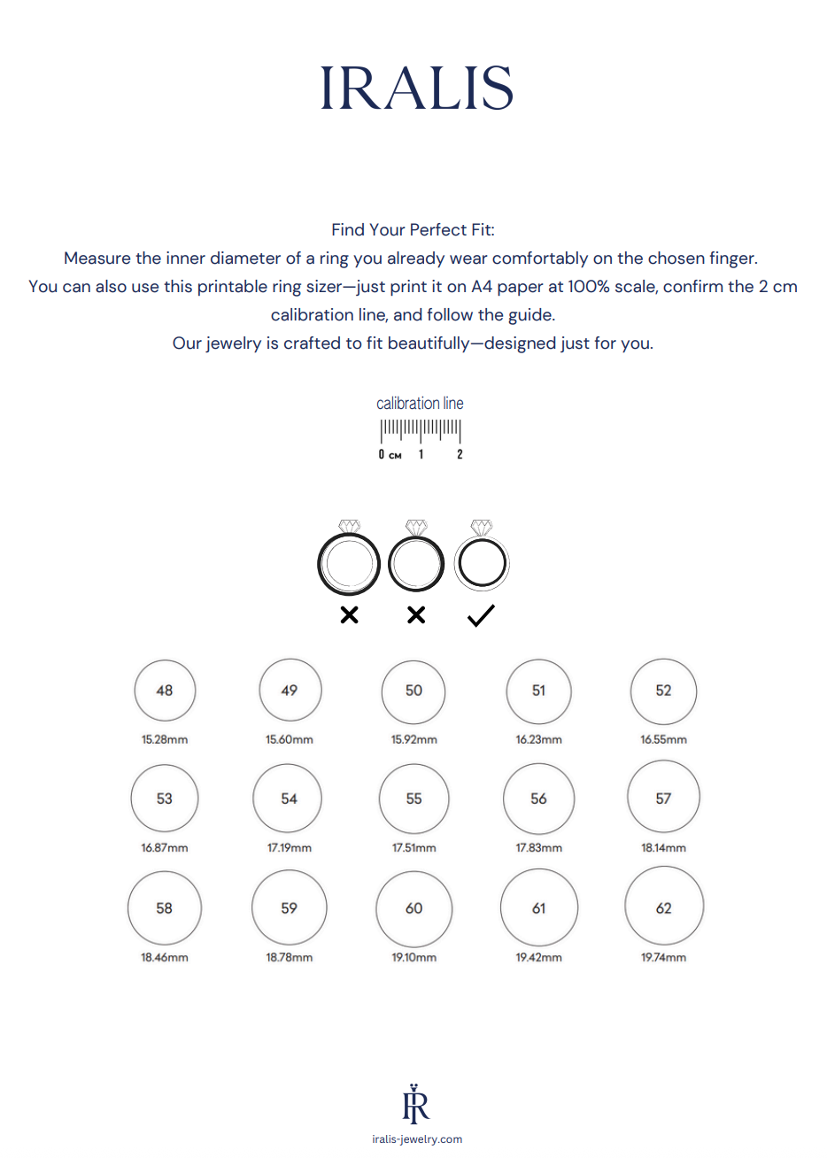 Falls ein persönlicher Besuch nicht möglich ist, können Sie Ihre Ringgrösse bequem von zu Hause aus mit unserem kostenlosen Ringgrössenmesser oder unserer kostenlosen, ausdruckbaren Ringgrössentabelle ermitteln. Messen Sie Ihren Finger unter normalen Bedingungen (nicht bei Kälte oder grosser Wärme) und berücksichtigen Sie dabei die Breite Ihres Fingerknöchels, damit der Ring bequem sitzt und sicher hält.