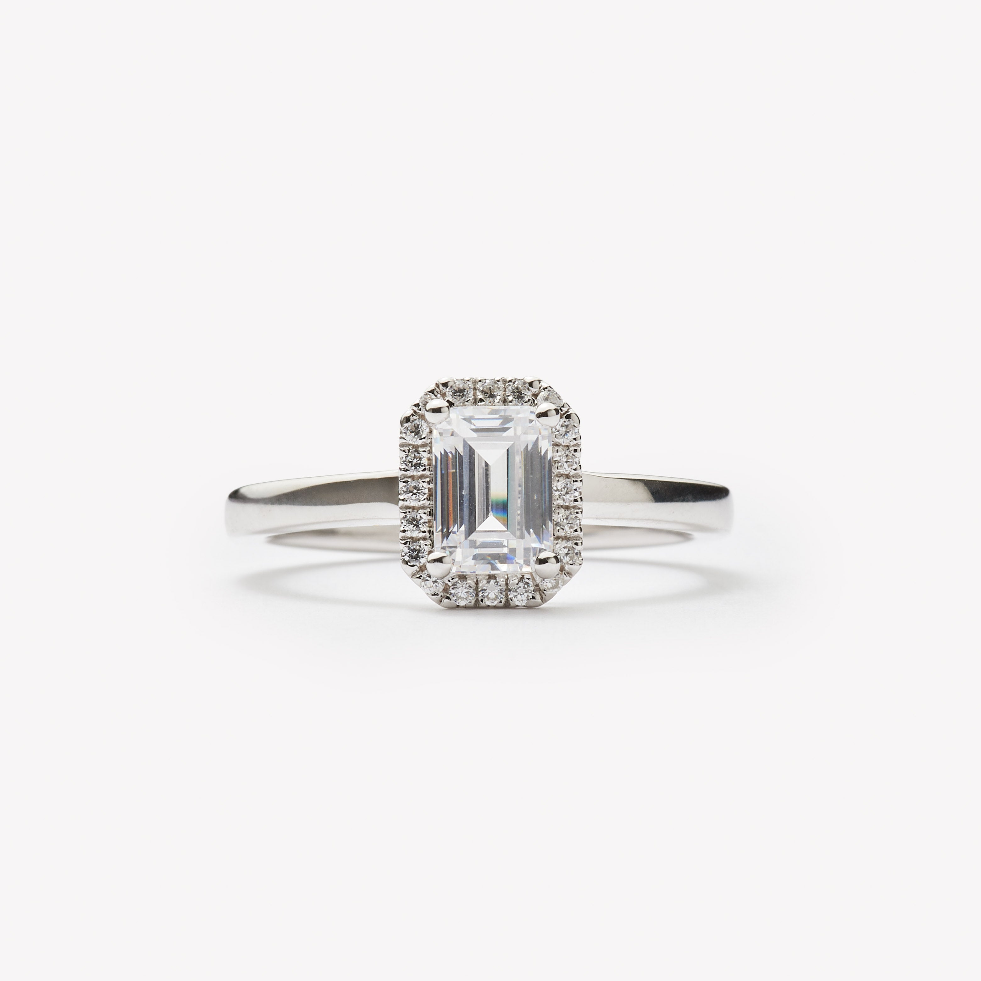 - Halo-Fassung : Ein zentraler Diamant ist von kleineren Steinen umgeben, was das Funkeln verstärkt. Sehen Sie sich unseren Selene-Ring als Beispiel an.